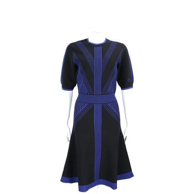 KARL LAGERFELD 卡爾 老佛爺 幾何圖案黑藍雙色針織連身裙 洋裝