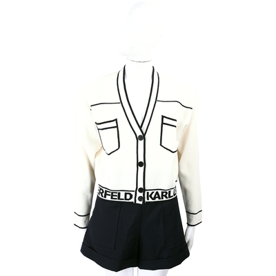 KARL LAGERFELD 撞色口袋字母織紋棉混紡米白色開襟羊毛衫 外套