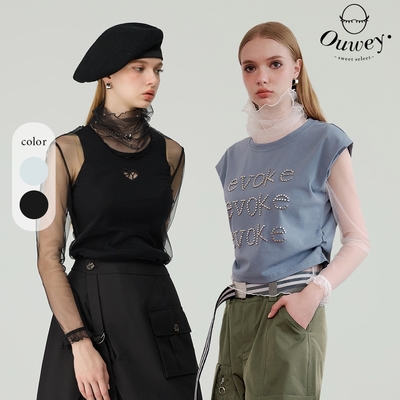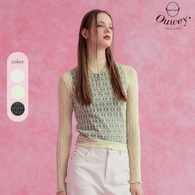OUWEY歐薇 透膚格紋網布蕾絲打底上衣(三色;S-L)3233321345$480