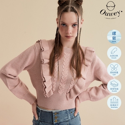 OUWEY歐薇 公主感麻花荷葉針織上衣(粉色;S-L)3233165002$780