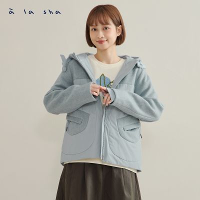 a la sha 阿財內裡毛料拼接鋪棉外套