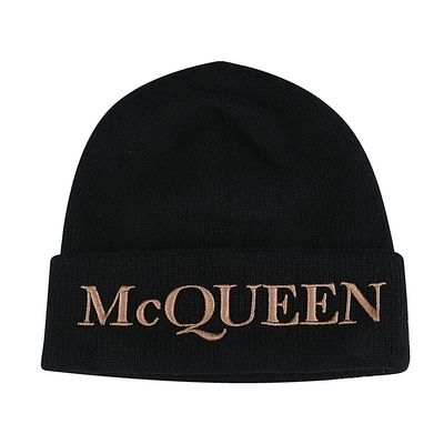 Alexander McQueen 可拆皮掛繩刺繡字母帆布卡片夾(黑色)