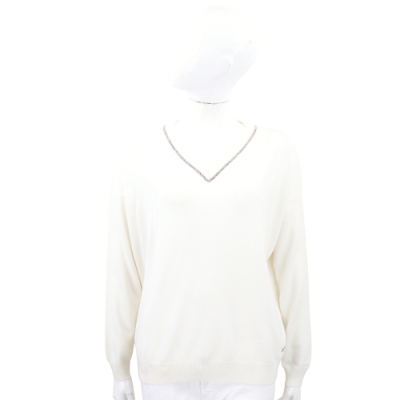 Andre Maurice 銀蔥V領米白色喀什米爾針織羊毛衫