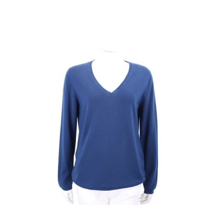 Andre Maurice V領喀什米爾藍色針織羊毛衫