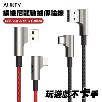 AUKEY 鋅合金 USB-A to Type-C L型彎頭快充傳輸線 2M-2入(黑+紅) 適用iPhone16/15$168
