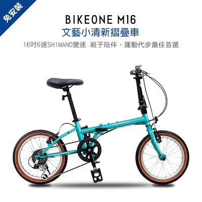 BIKEONE M16 16吋6速 SHIMANO變速文藝小清新摺疊車小折兒童自行車(親子陪伴、運動代步最佳首選)$4,67585折