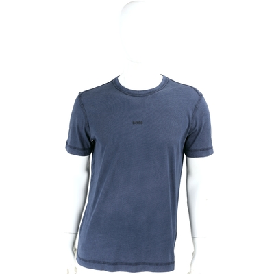 BOSS 字母矽膠徽標水洗深藍色棉質短袖T恤 TEE(男款)