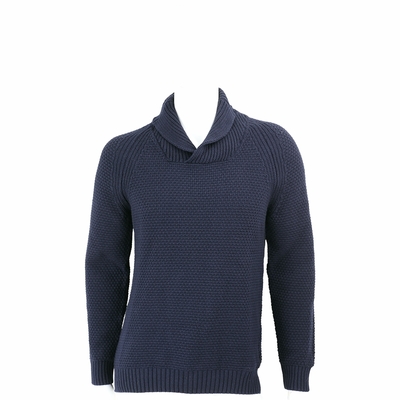 BOSS 翻領粗針織深藍色羊毛混紡針織衫 毛衣(男款)