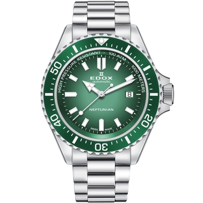 EDOX Neptunian 海神 68H超動能300米潛水機械錶 新年開運 送禮推薦-綠/42mm E80801.3VM.VDN$47,43085折