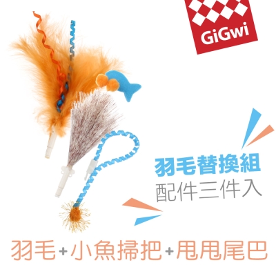 GiGwi我跑給你追-旋轉羽毛小魚掃把替換組$380