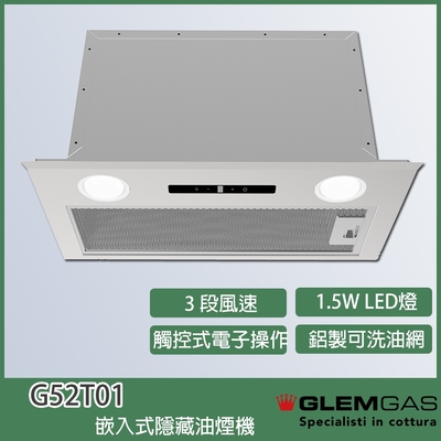 【KIDEA奇玓】Glem Gas G52T01 嵌入隱藏式油煙機 52cm 觸控按鍵 3段風速 LED燈