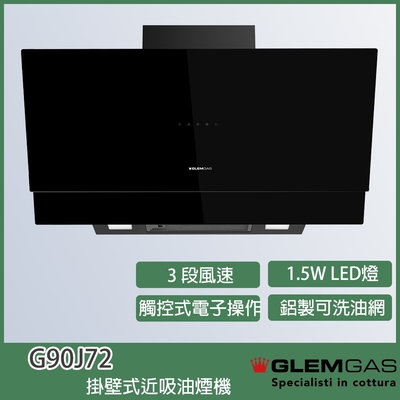 【KIDEA奇玓】Glem Gas G90J72 掛壁近吸式油煙機 90cm 觸控按鍵 3段風速 3D環吸 LED燈