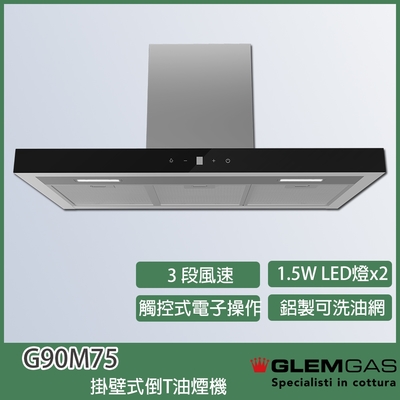 【KIDEA奇玓】Glem Gas G90M75 掛壁倒T式油煙機 90cm 觸控按鍵 3段風速 LED燈