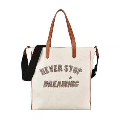 GOLDEN GOOSE NEVER STOP DREAMING黑字LOGO亮片設計帆布肩背斜背包(米)