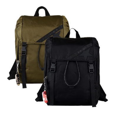 GOLDEN GOOSE JOURNEY黑字壓印LOGO尼龍束口扣式後背包(兩色)