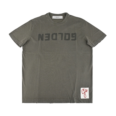 GOLDEN GOOSE字母印花LOGO仿舊設計棉質短袖T恤(男款/橄欖綠)