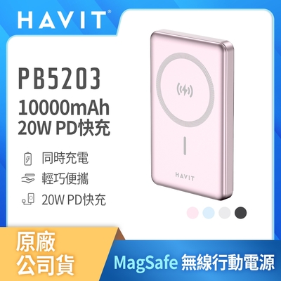 【Havit 海威特】10000mAh強力磁吸MagSafe 20W快充無線行動電源 PB5203