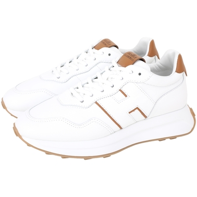 HOGAN H641 字母飾邊棕尾拼接牛皮繫帶運動鞋(白色/女款)