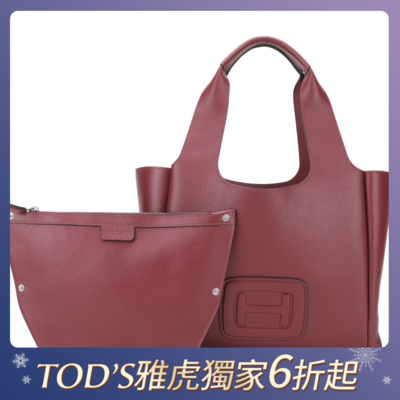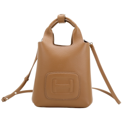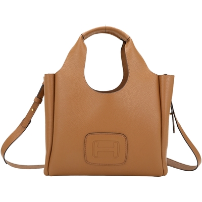 HOGAN H-Bag 小型 錘紋牛皮手提/斜背托特包(棕色)