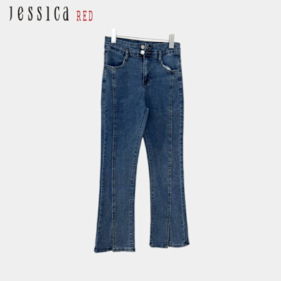 JESSICA RED - 百搭休閒雙開釦棉質小開衩牛仔長褲R44204$1,412