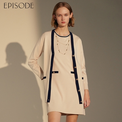 JESSICA RED - 氣質百搭翻V領假兩件拼接針織衫(褐)R45501$1,8329折
