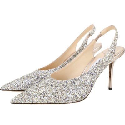 JIMMY CHOO IVY 85 展示品 香檳金亮片露跟尖頭高跟鞋(兩腳鞋底汙痕)