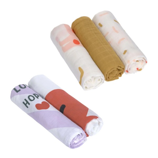 德國Lassig-超柔手感竹纖維嬰兒包巾毯3入-(玫粉櫻桃/快樂檸檬)