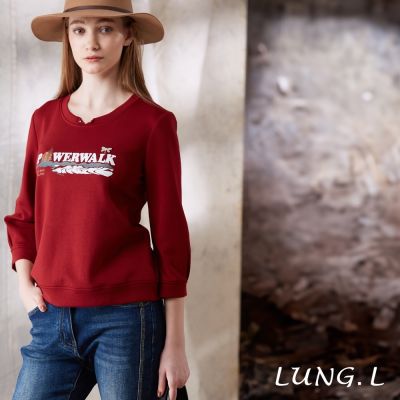 LUNG.L林佳樺 珊瑚紅拼接格紋長袖棉質女裝上衣LQ83A$1,7829折
