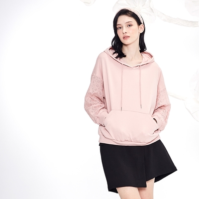 【MASTINA】蕾絲拼接休閒帽T長袖上衣 藍 粉 紫 (魅力商品)