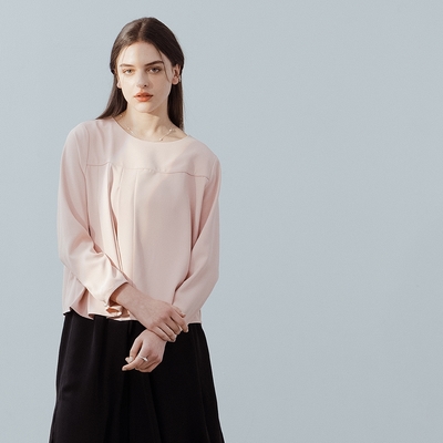 【MASTINA】不對稱壓褶長袖襯衫 黑 粉 灰