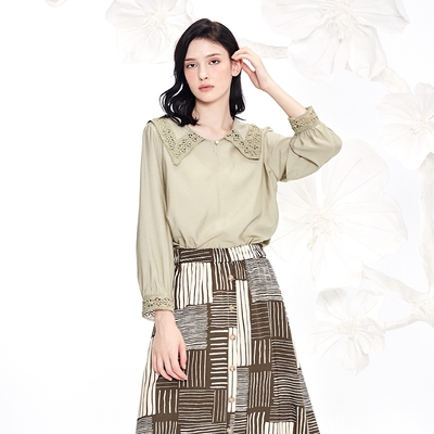 【MASTINA】海軍蕾絲領甜美長袖襯衫 紅 綠 桔