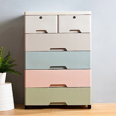 Mr.box 48面寬-北歐風仿木紋5層收納櫃-附輪(2小抽+4大抽)-灰色 / 白色
