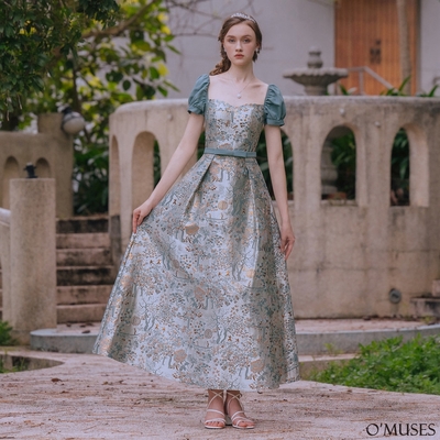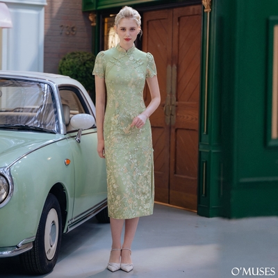OMUSES 手工蕾絲刺繡綠色旗袍洋裝