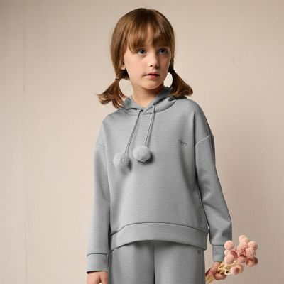 PIPPY斜格印花內刷毛棉質連帽上衣-水色 下折扣