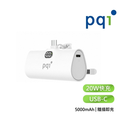 【 PQI 勁永】5000mAh 20W USB-C 快充直插口袋行動電源 (電量顯示 自帶腳架 過充保護 PD05)$790