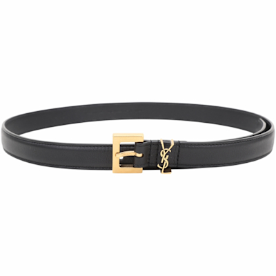 YSL Saint Laurent CASSANDRE 金方釦標誌滑面牛皮腰帶(2CM/黑色)