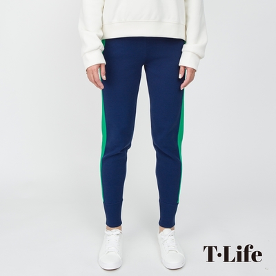 T.Life 率性休閒撞色針織縮口長褲(3色)