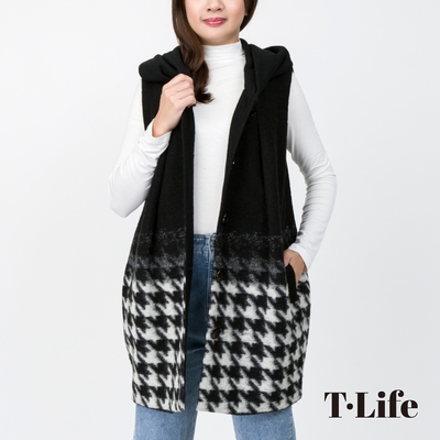 T.Life 優雅高貴格紋拼接設計毛呢背心外套(1色)