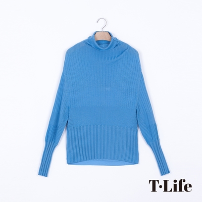 T.Life 典雅素色拼接長袖長版高領線衫(4色)