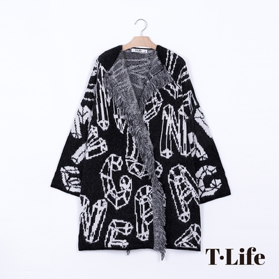 T.Life 黑白奇趣字母花紋長版線衫外套(1色)