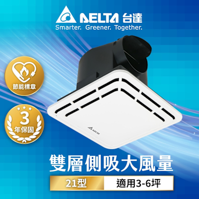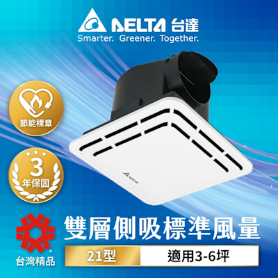 【台達電子】3-6坪 21型雙層側吸式 大風量 超靜音 節能換氣扇 DC直流 三年保固(VFB21ABT6)