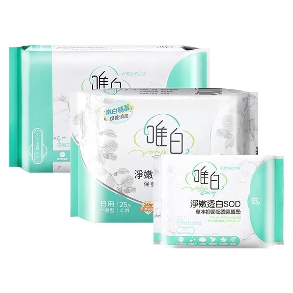 【唯白V.D】淨嫩透白SOD草本抑菌衛生棉(MIT台灣製/清新檸檬草/草本涼感/54倍瞬吸)16包組$990