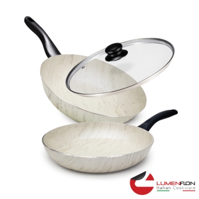 義大利Lumenflon大理石不沾雙鍋28cm三件組(炒鍋+平底鍋+蓋)(快)