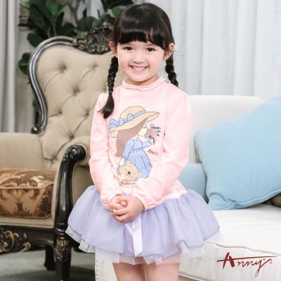 Annys安妮公主-童裝 立體紋路拼接蝴蝶結紗裙秋冬款長袖洋裝 *2625粉紅