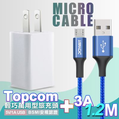 電池王 MICRO USB 輕巧充電組(旅充頭+ Micro 3A閃充編織傳輸線-藍)$279