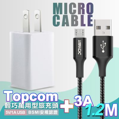 電池王 MICRO USB 輕巧充電組(旅充頭+ Micro 3A閃充編織傳輸線-黑)$279