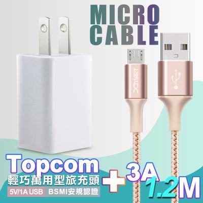 電池王 MICRO USB 輕巧充電組(旅充頭+ Micro 3A閃充編織傳輸線-粉)$279