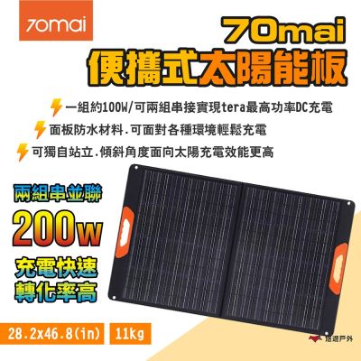 70mai 便攜式太陽能板 200W 串接使用 獨立站立 隨時發電 折疊攜帶 露營 悠遊戶外