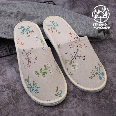 小樹屋-旅行用拋棄式亞麻印花拖鞋(兩雙一組)$199