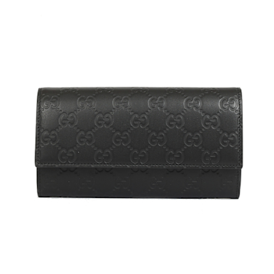GUCCI SIGNATURE牛皮壓印LOGO釦式皮夾(黑色)